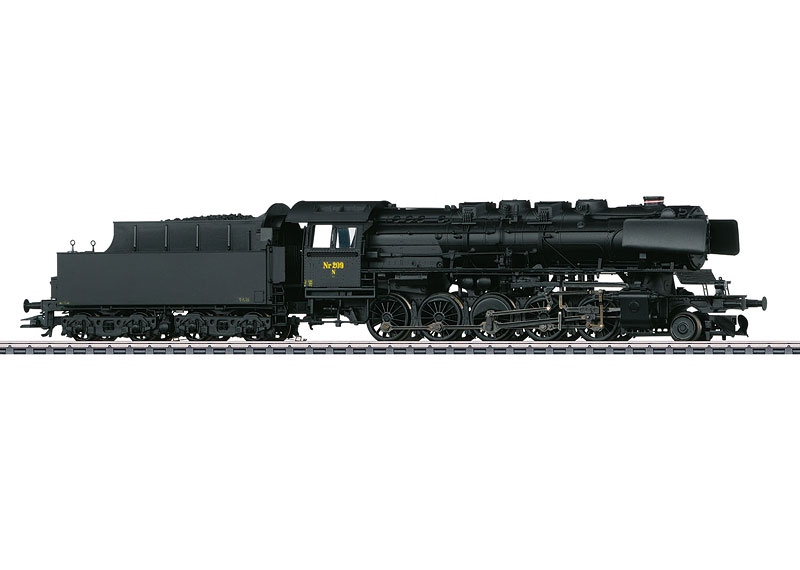 Modell: Mit Digital-Decoder mfx und umfangreichen Geräuschfunktionen. Geregelter Hochleistungsantrieb. 5 Achsen angetrieben. Haftreifen. Lokomotive und Tender weitgehend aus Metall. Eingerichtet für Rauchsatz 7226. Fahrtrichtungsabhängig wechselndes Zweilicht-Spitzensignal und nachrüstbarer Rauchsatz konventionell in Betrieb, digital schaltbar. Beleuchtung mit wartungsfreien warmweißen Leuchtdioden (LEDs). Kolbenstangen-Schutzrohre und Bremsschläuche liegen bei.