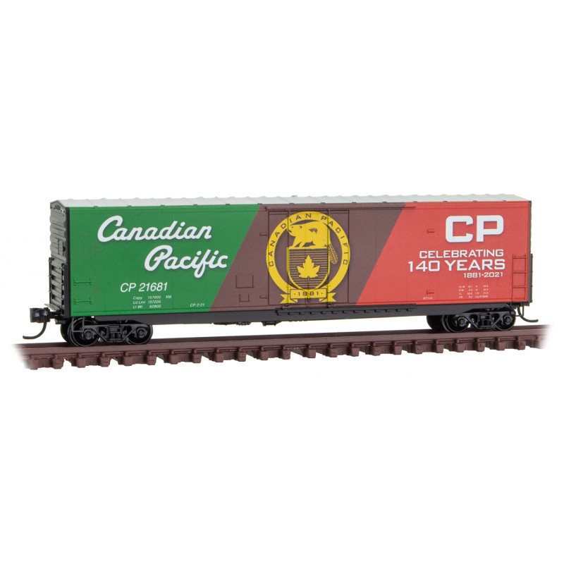 Incorporated in 1881, Canadian Pacific Railway is one of the largest Class 1 Railroads in Canada, owning over 12,000 miles of track in Canada and the United States. Canadian Pacific celebrated its 140th Anniversary in February 2021. This 50’ plug-door boxcar features three historic CP freight car paint schemes and heralds from the past and present.