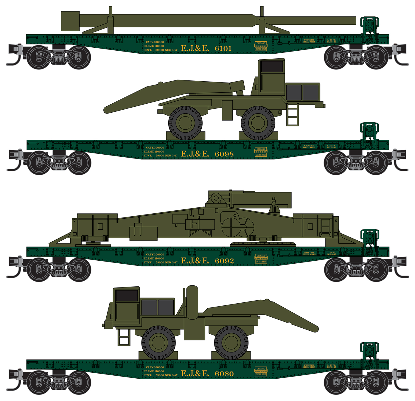 Flat Cars - Elgin, Joliet and Eastern mit M65 Cannon Load