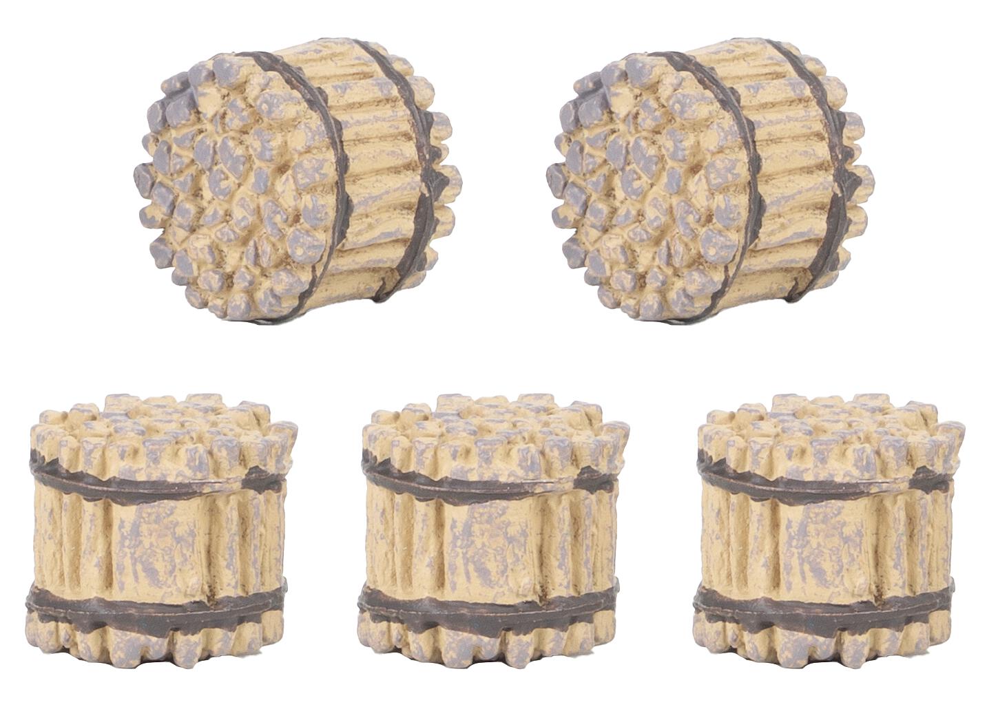 Fünf helle Holzbündel, sorgfältig geschnürt – perfekt zur Gestaltung von Waldrändern, Holzlagern oder Handwerksbetrieben. Ob frisch geschlagenes Brennholz oder vorbereitetes Baumaterial: Diese kleinen Details erwecken die Modellwelt zum Leben.