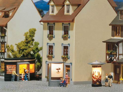 Die Packung enthält: moderne Gestaltungselemente wie Toilettenanlage, Kiosk, verschiedene Werbeträgerarten, die teilweise beleuchtet werden können.